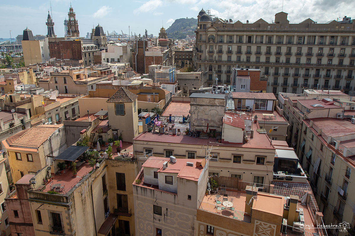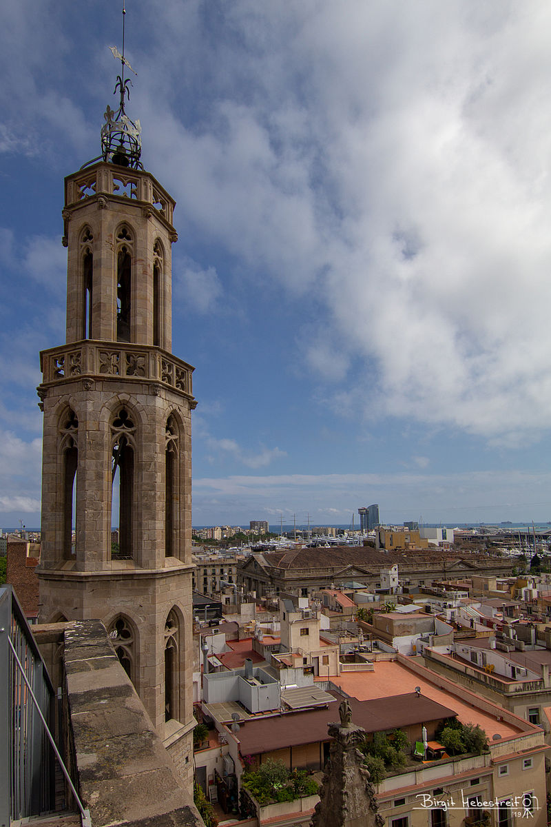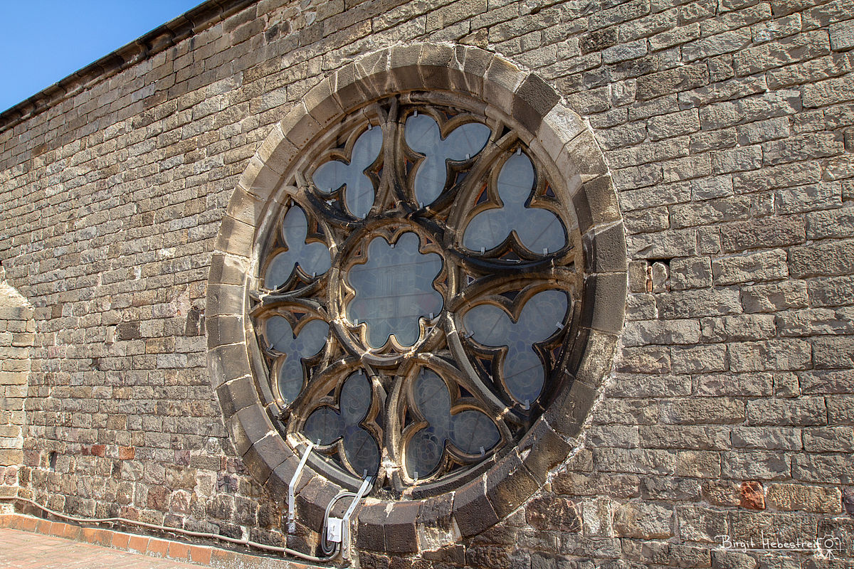 Unsere Ferienwohnung im Stadteil El Born liegt direkt am Hintereingang der Kirche Santa Maria del Mar. Einmal kurz angucken müssen wir die uns wenigstens. Also laufen wir mal drum herum. Die Kirche ist ganz von engen Gassen umgeben, sodass man die Fassade kaum vollständig sehen kann. Der Eintritt ist preiswert, eine Führung - incl. Besichtigung des Daches - beginnt in wenigen Minuten: Also los! Die Zeit haben wir noch!
