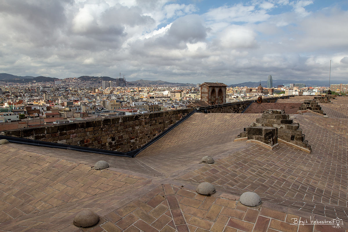 Hier steigen wir einmal aus, da man von hier einen herrlichen Blick über die Stadt hat. Abends wird hier auch die Wasser-Show Font Màgica aufgeführt. Wir vertreten uns etwas die Beine und machen ein paar Fotos, dann geht es mit einem der nächsten Busse wieder hinunter in die Stadt. Wir überlegen noch, ob wir mit der Seilbahn in die Stadt fahren sollen, aber dann verpassen wir die Station.