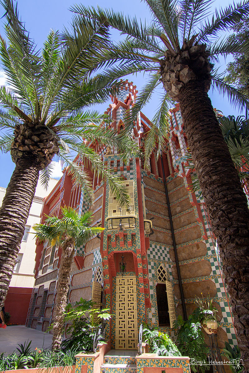 Die Casa Vicens ist Casa Vicens ist ein weniger bekanntes Werk von Antoni Gaudí und erst seit November 2017 für die Öffentlichkeit als Wohnhaus-Museum zugänglich. Das Wohnhaus entstand zwischen 1883 und 1885 als Auftragsarbeit für einen vermögenden Börsenmakler. Das Gebäude war die erste große selbständige Arbeit Gaudís. An ihr zeigen sich schon einige Grundelemente seines späteren Stils wie die Verwendung naturalistischer Ornamentik, von Keramik und vielen Farben, aber auch Einflüsse spanischer und arabischer Elemente. Wegen einer Straßenverbreiterung und einer Grundstücksteilung ging ein Großteil des Gartens mit Gaudís monumentalem Brunnen und einem Pavillon verloren. |