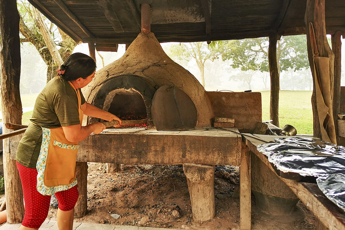Die Betreiber sind sehr nett und heizen gerade ihren Lehmofen im Freien an, in dem das Essen zubereitet wird. Das Mittagessen verschwindet gerade im Ofen. In so einem Ofen dauert es aber eine Weile und so haben wir noch etwas Zeit. Wir trinken Kaffee und Coca-Tee und beziehen unsere Zimmer. Es bleibt auch noch Zeit für eine kleine Wanderung zu den drei Wasserfällen.