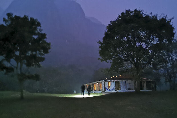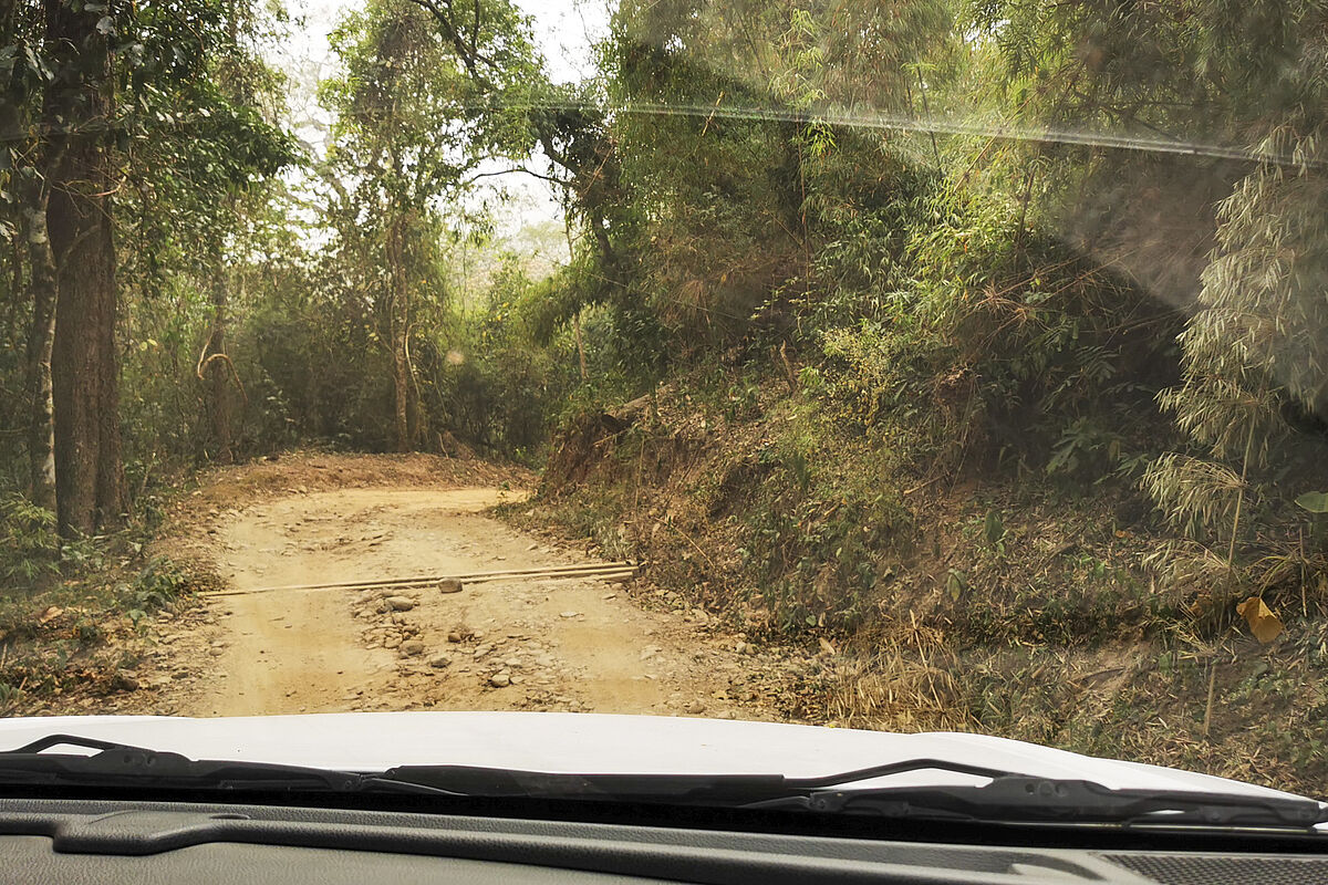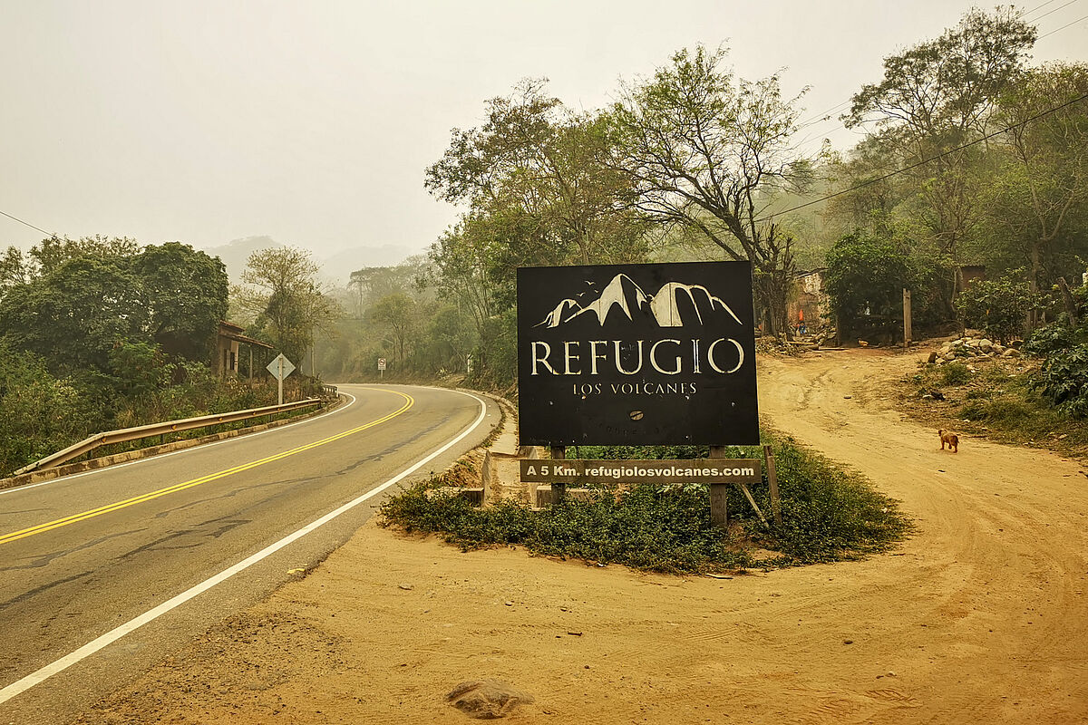 Wir verlassen die Stadt in Richtung Westen und fahren im Süden des Nationalparks entlang. Wir wollten heute zur Urwald-Lodge Refugio Los Volcanes. Die ist aber relativ schwierig zu erreichen. Deshalb steigen wir nach zwei Stunden Fahrt in Jeeps um, die uns über eine abenteuerliche Straße ins Refugium bringen. Für die 5 km brauchen wir über eine halbe Stunde. Das Refugium ist eine wunderschöne kleine Oase und inmitten hoher, teils bewaldeter Berge gelegen. Es liegt an kleinen Wasserfällen in denen man auch baden kann.