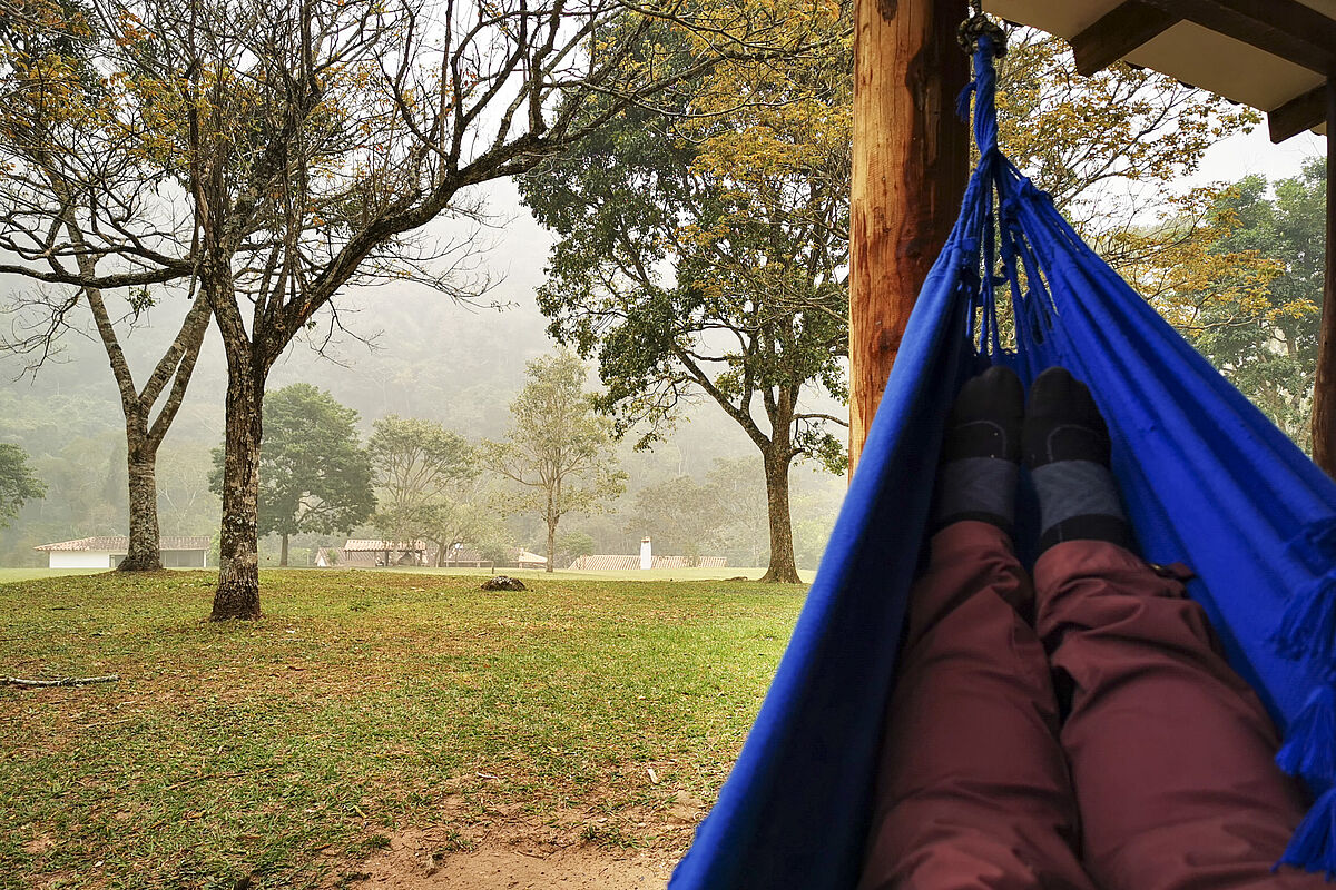 Dann ist eine gute Stunde Zeit bis zu Beginn unserer ersten Wanderung. Wir sind schon lange auf den Beinen und direkt vor meinem Zimmer gibt es eine Hängematte. Ich schaukle gemütlich darin.