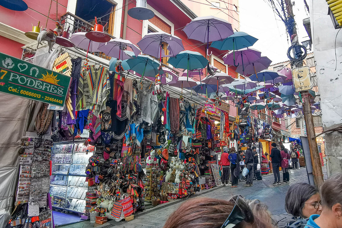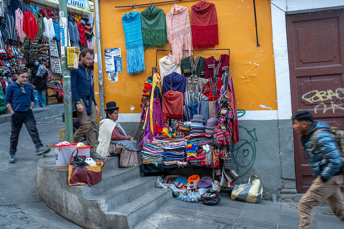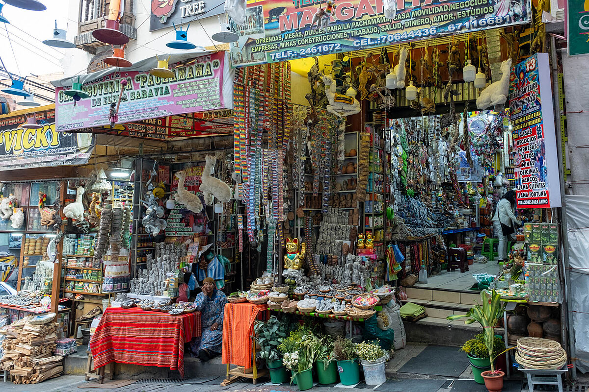 Wir gehen zum Mercado Hechiceria (Zaubermarkt), auch Hexenmarkt genannt. Hier gibt es Steine, Figuren, Lamaföten oder Pulverchen für jeden Zauber.