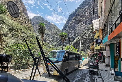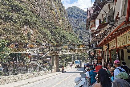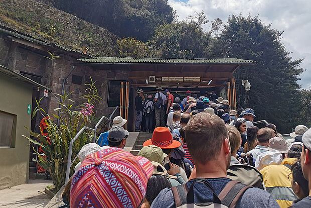 In Aguas Calientes sind inzwischen riesige Schlangen an den Shuttlebussen, die uns zur alten Ruinenstadt hinauf bringen sollen.