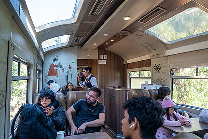 15:15 Uhr fährt unser Zug dann nach Cusco ab. Wir können durchfahren. Es ist lustig. Wir haben gute Laune und so gehen die dreieinhalb Stunden Fahrt schnell rum.