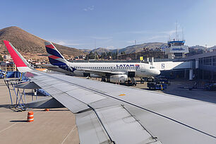 Kurz vor zwei werden wir dann zum Flughafen abgeholt. 15:30 Uhr sitzen wir im Flieger nach Lima. Da es aber noch eine Stunde Verspätung gibt, sind wir erst um sechs in Lima - als gerade die Sonne untergeht. Der Weg im Bus zum Hotel dauert wieder eine Stunde. Dann gehen wir nur noch ins "Sofa Café" gegenüber zum Abendessen. Ich esse Reis mit Scampi und leiste mir den ersten (und letzten) Aperol-Spritz des Urlaubs.
