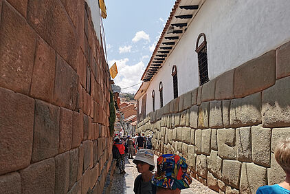 Weiter geht es durch die wunderschönen Gassen der Stadt. Wir bestaunen die perfekt behauenen Mauern aus der Inka-Zeit, zum Beispiel den zwölfeckigen Stein.