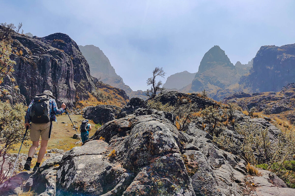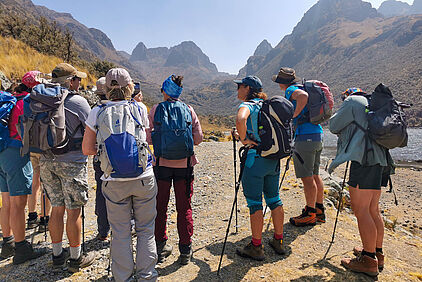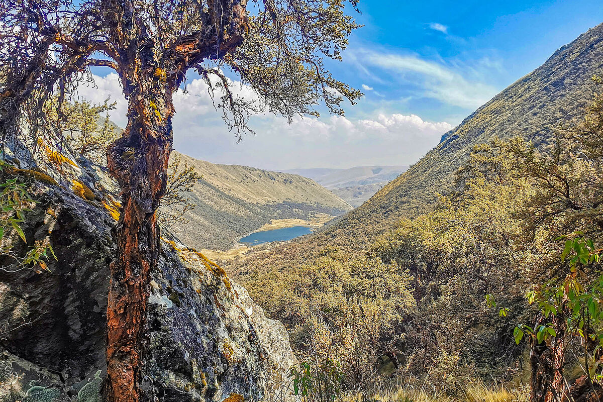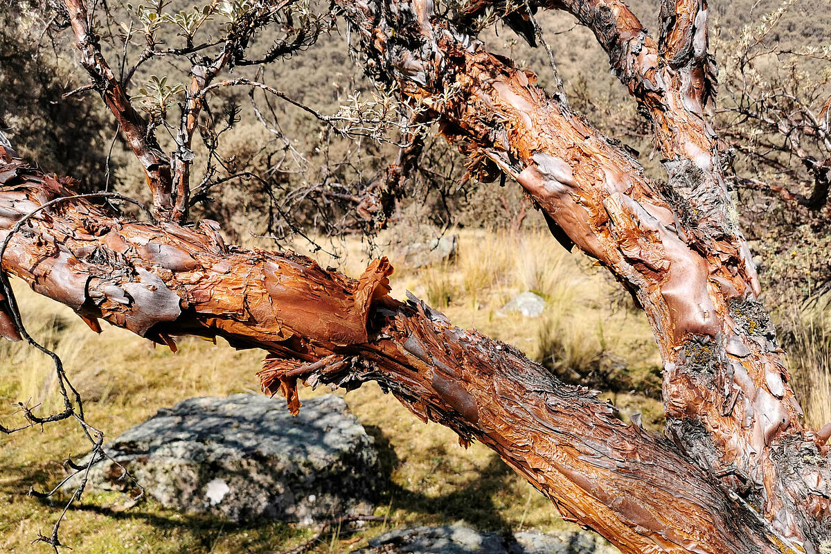 Um 10:00 Uhr wandern wir los. Unsere Wanderung führt uns in den Höhenbereich von 3900-4200 m. Wir müssen uns an die Höhe gewöhnen. Auch bei dieser Wanderung führt uns ein Guide. Unsere Tour führt uns zuerst durch Jahrhunderte alte Wälder mit Quenoa Bäumen, die Baumart, die weltweit am höchsten wächst.