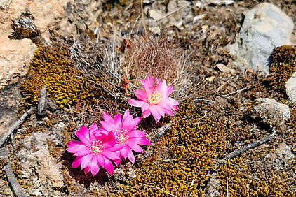 Abwärts bestaunen wir wieder Kakteen, Blumen und Puyas.