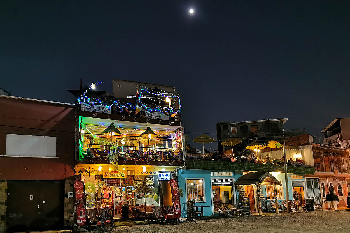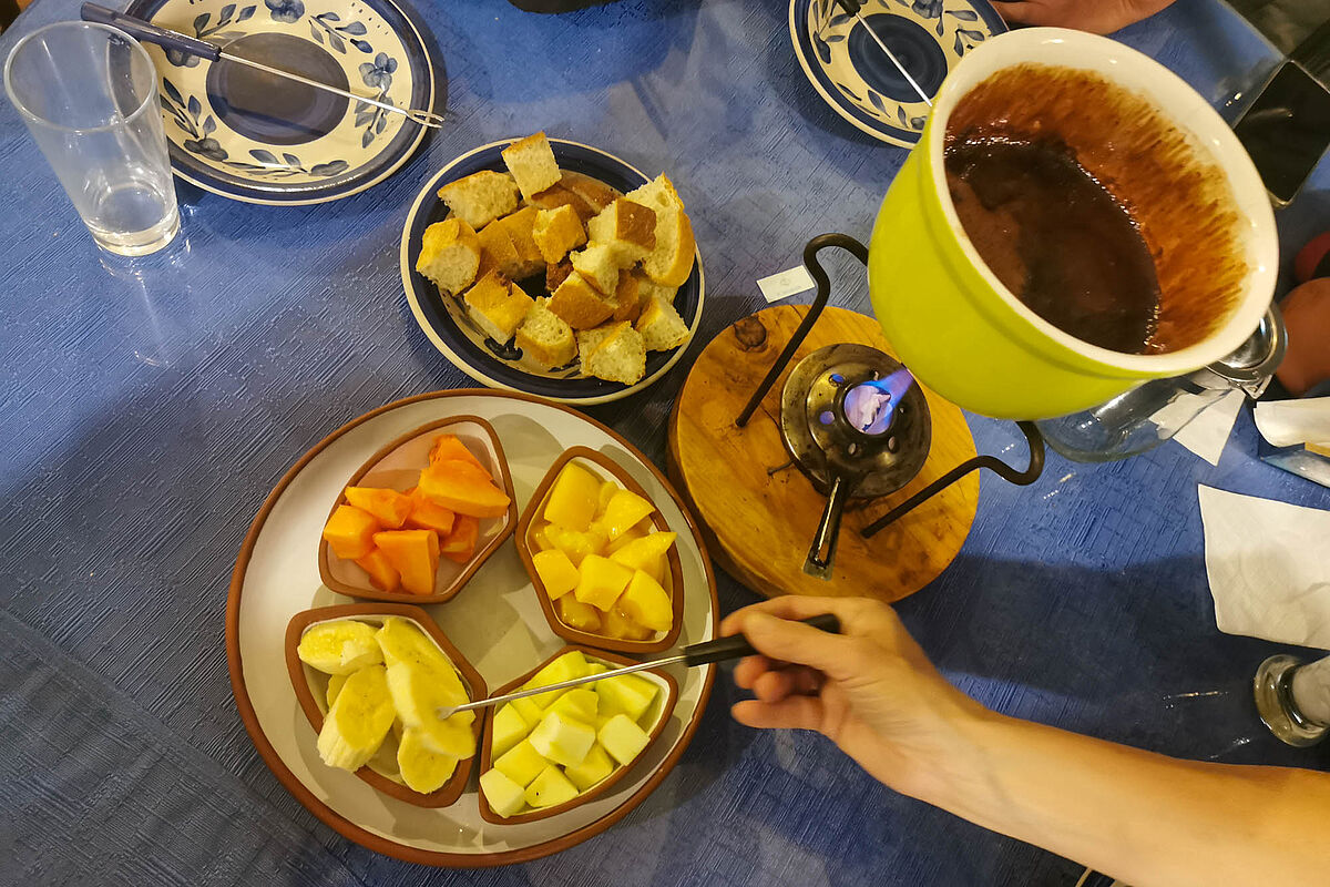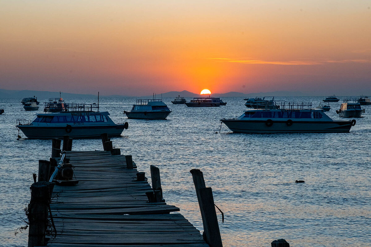 Zum Sonnenuntergang spazieren wir zum Hafen und machen Fotos. Inzwischen ist es dunkel. In einer Strandbar trinken wir noch ein Glas Wein, dann geht es zurück ins Hotel zum Abendessen. Höhepunkt ist der Nachtisch: Früchte-Schoko-Fondue.