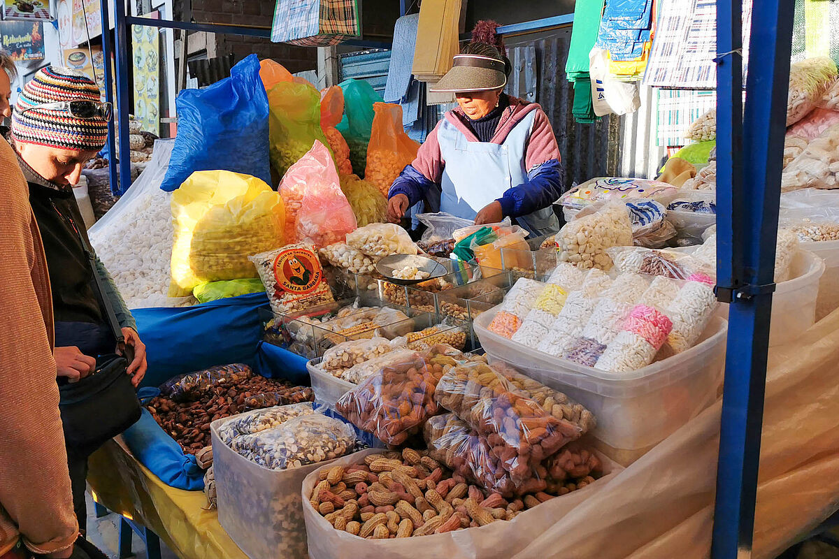 Stattdessen schlendern wir über den Markt, essen das größte Popcorn, das ich je gesehen habe und kaufen dann noch etwas ein. Wir wissen ja nicht, wie das später in Peru aussehen wird.