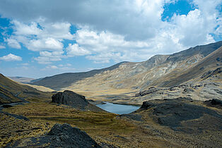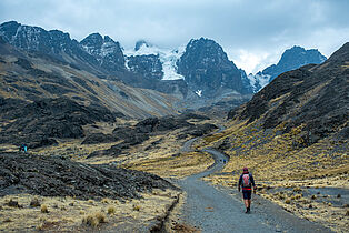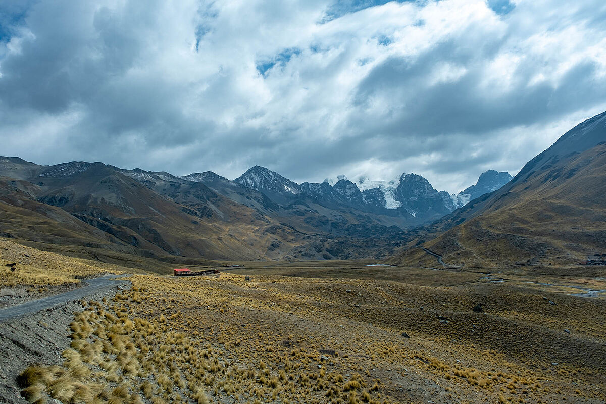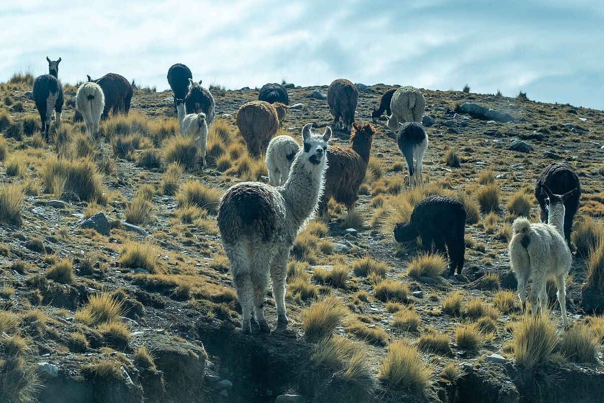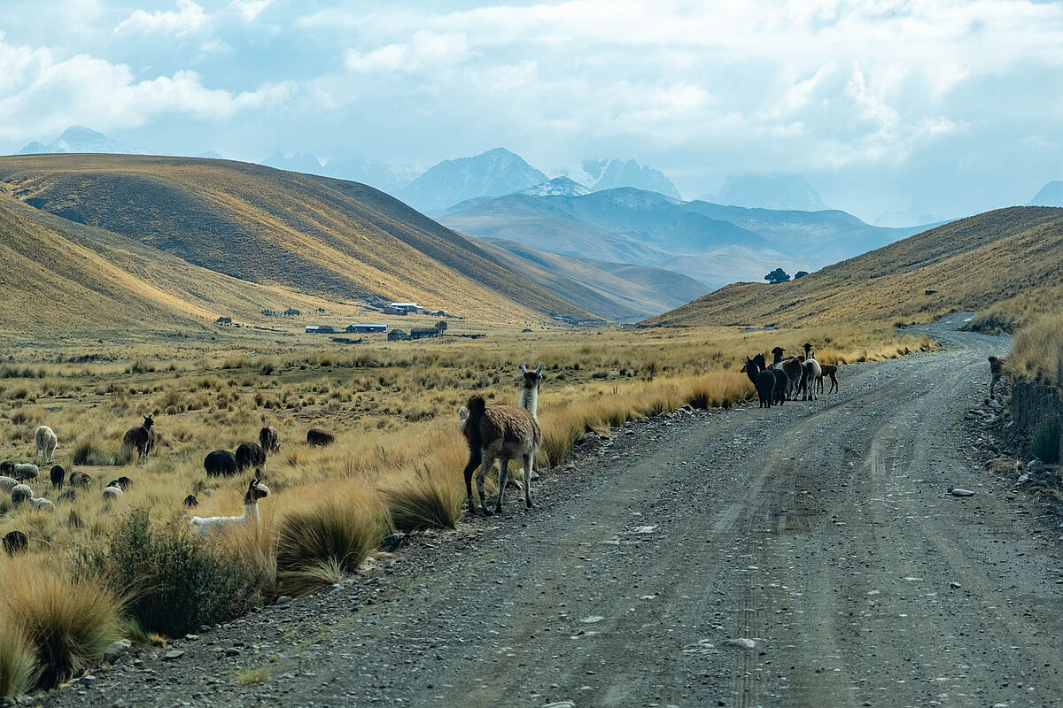 Es geht über eine Schotterpiste - vorbei an einzelnen Hütten, Lama- und Alpakaherden.