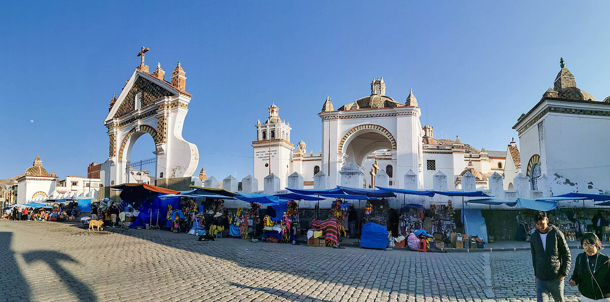 In San Pedro de Tiquina besteigen wir wieder unseren Bus und fahren die letzten Kilometer bis Copacabana.