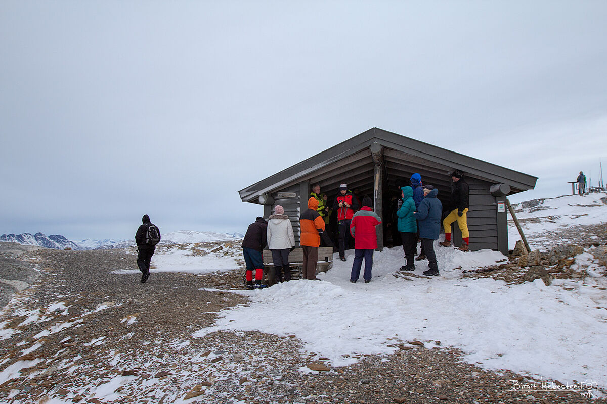 Der Tag beginnt eigentlich ziemlich früh: zwischen sieben und acht Uhr überqueren wir den Polarkreis. Im Winter ist die Insel Vikingen mit der bekannten Kugel kaum zu sehen. Auch wenn die Kugel angestrahlt wird.