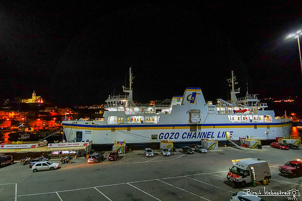 Unsere geplante Fähre um 19:30 Uhr zurück nach Malta schaffen wir nicht. Aber zum Glück fahren die jede halbe Stunde.