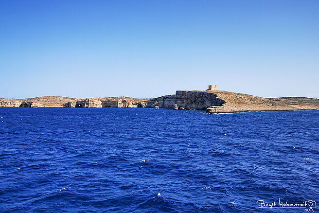 Eine gute Stunde später sind wir schon auf der Fähre nach Gozo und fahren an Comino vorbei. Am Fuße des St. Mary´s Tower, eines Wachturms auf Comino, habe ich vor drei Tagen gestanden.