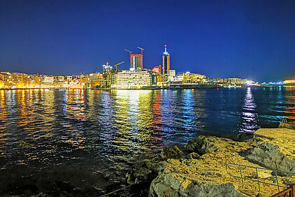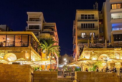 Dann spaziere ich mit meiner neuen "Mitschülerin" die Strandpromenade entlang nach St. Julians. Dort geht es unter anderem in eine Pizzaria. Auf dem Rückweg klettern wir auf den Steinen am Strand entlang.