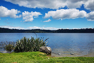 Nach einer Stunde Fahrt halten wir für eine Pause an einer schönen Picknickstelle am Lake Ianthe.