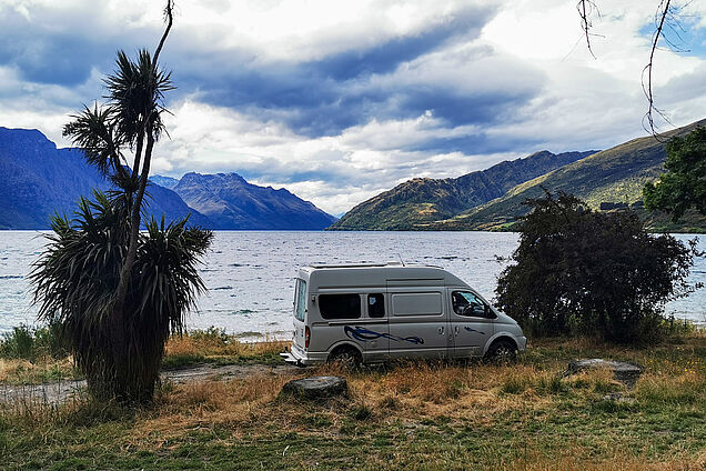 Dann fahren wir 75 km am Ufer des Sees entlang - fast bis zu seiner Südspitze, Wir wollen morgen bis kurz vor den Milford Sound fahren und da zählt jeder Kilometer. 6 km vor Kingston ist ein Badeplatz auch als Freedom Campingplatz ausgewiesen. Und der ist wirklich richtig schön !!!