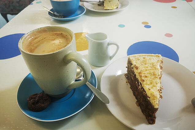 In The Well gibt es wirklich wunderbaren Carrot Cake und sehr guten Kaffee bei sehr netter Bedienung. Das sieht man dem kleinen Café von außen gar nicht an. Es ist das einzige Haus, das heute am Sonntag offen zu sein scheint. Aber nicht nur deshalb eine Empfehlung!