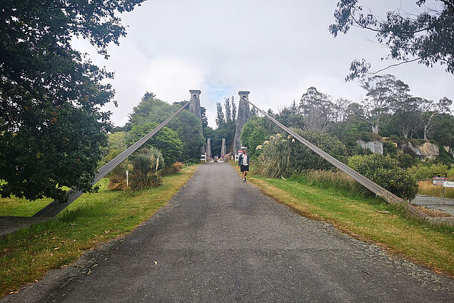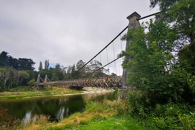 Wir fahren durch und halten nur mal an der Clifden Suspension Bridge, einer schönen alten Brücke aus dem Jahr 1899, die inzwischen durch eine moderne daneben liegende ersetzt worden ist.