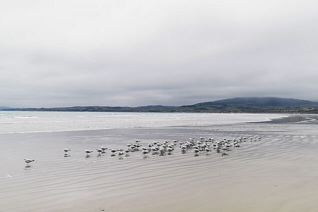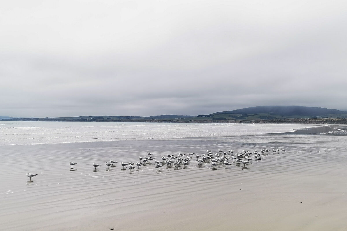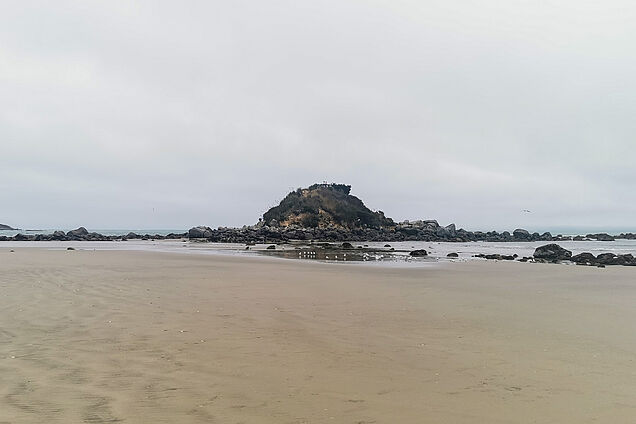 Dann fahren wir weiter zum Orepuki Beach, an dem man auch übernachten kann. Hier gibt es das kleine Inselchen "Monkey Island", auf das man bei Ebbe auch zu Fuß spazieren kann.
