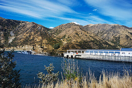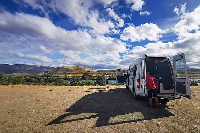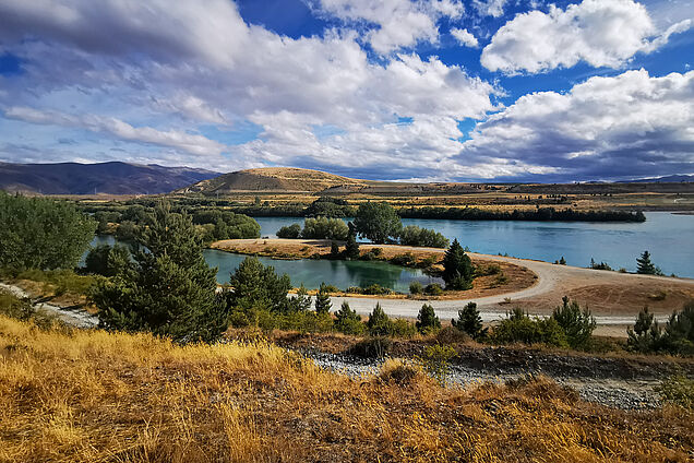 Hier gibt es zwischen Holiday-Park und Kraftwerk einen schönen Freedom Campingplatz auf einer Anhöhe über dem Lake Ruataniwha. Sehr schön - und wunderschöne Aussicht über den See und den hier einmündenden Ohau River!
