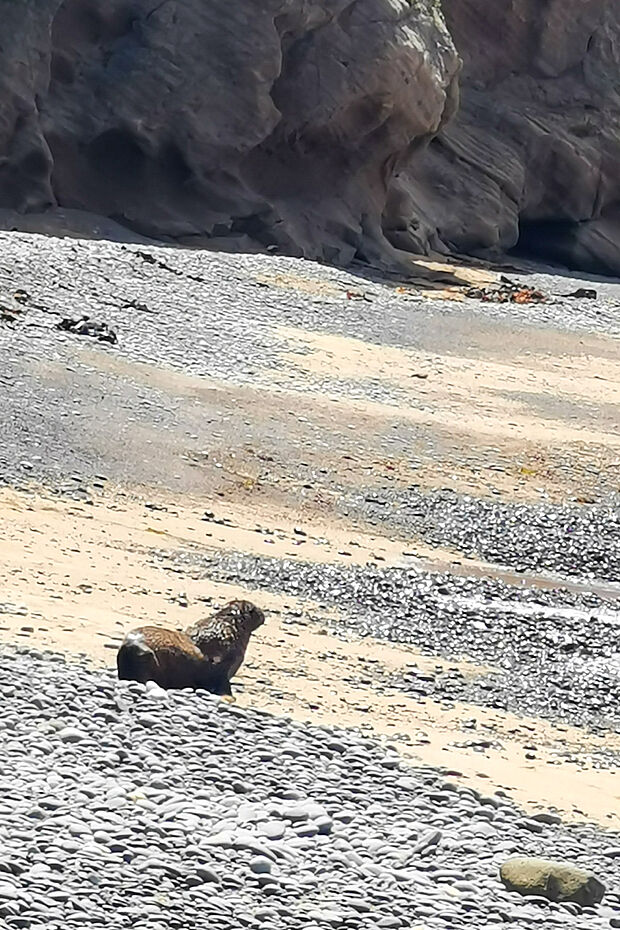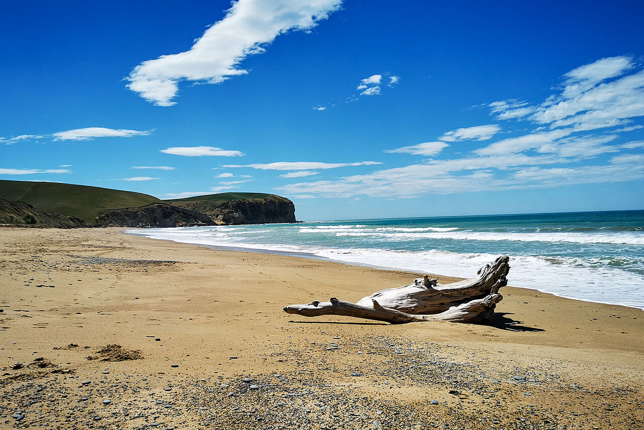 Es ist richtig schönes Wetter, also wollen wir uns einen Strand suchen. Wir müssen sowieso Richtung Oamaru - und dort ist ein Strand - also los. Theoretisch alles gut, praktisch liegen da Seelöwen am Strand - und ob wir mit denen schwimmen wollen? Außerdem schwimmen eine Menge Seepflanzen da rum. Also fahren wir nochmal die Küste entlang Richtung Süden.
