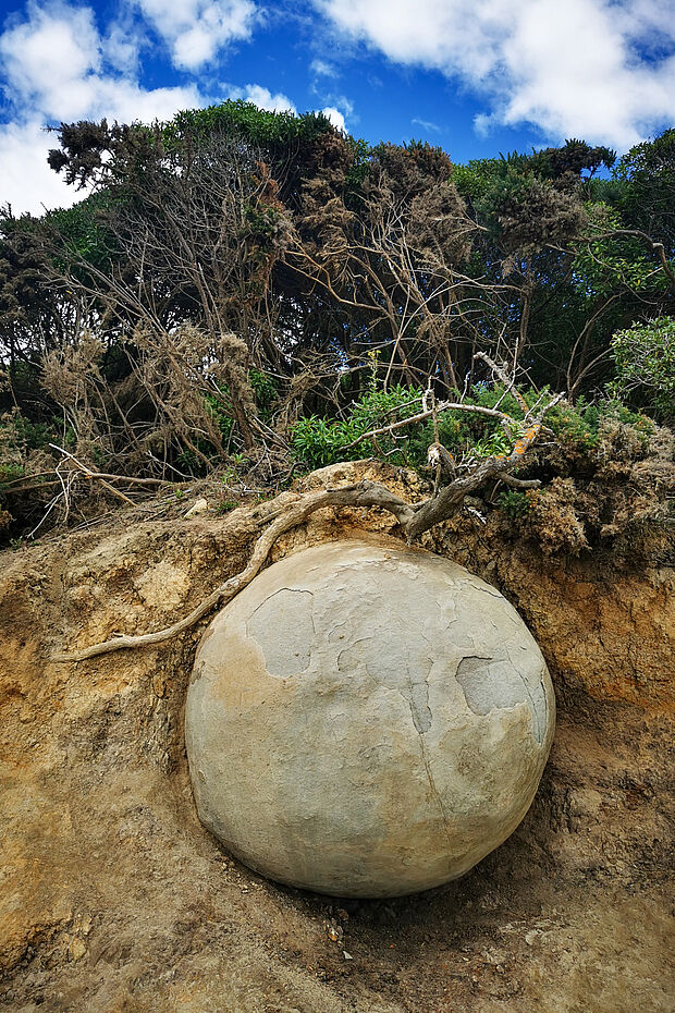 Die ca. 50 kugelförmigen Felsen haben einen Durchmesser von bis zu 2,20 Metern und wiegen bis zu sieben Tonnen. Die Kugeln bestehen aus Lehm, Schlamm und Ton, die von Calcit zusammengehalten werden. Wahrscheinlich sind sie 60 Millionen Jahre alt.