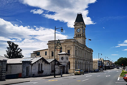 Nun ist Kaffee-Zeit. Deshalb fahren wir nach Oamaru rein. Die Stadt ist wieder völlig anders als die bisher gesehenen. Viele historische Gebäude aus der Kolinialzeit prägen das Stadtbild. Die meisten Cafés machen in Neuseeland 15 Uhr zu, aber einige haben auch bis 16 Uhr offen. Deshalb haben wir Glück und finden ein Café, das auch leckeren Kuchen hat.
