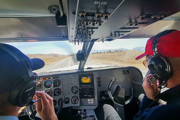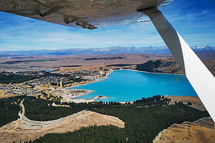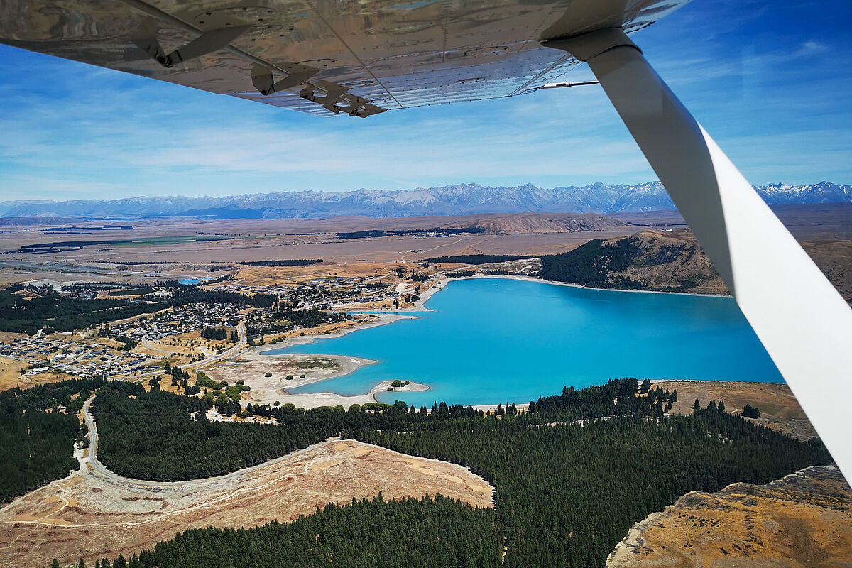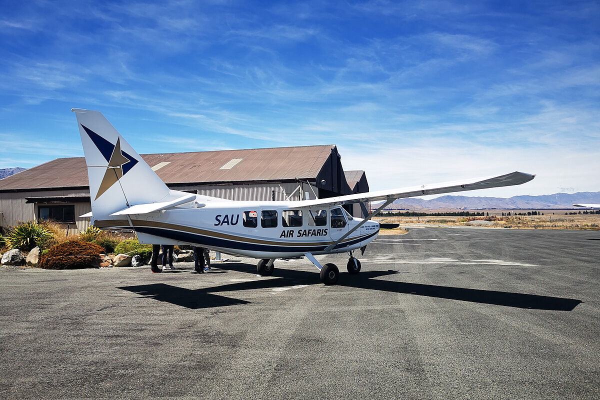 Deshalb fahren wir zum Flugplatz nach Tekapo, wo wir bei AIR SAFARIS für 12 Uhr einen Rundflug für Ute und mich buchen. Wir haben Lust dazu.