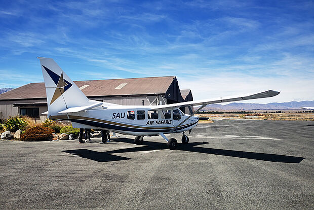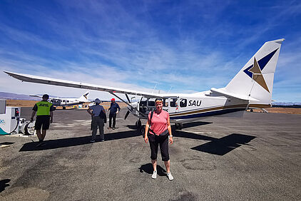Um 12 Uhr sitzen wir mit einer französischen Familie in einer kleinen achtsitzigen australischen Maschine. Der Rundflug soll eine Stunde dauern.