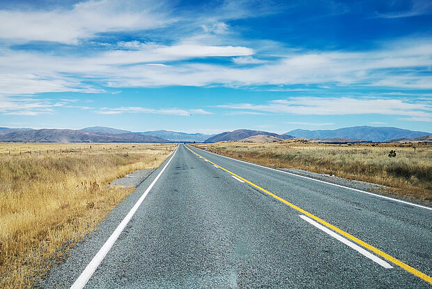 Wir fahren zurück zum See Pukaki. Die Wiesen sind trocken und gelb. Es herrscht höchste Brand-Warnstufe.