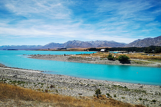 Dann spazieren wir noch durch Lake Tekapo Village.