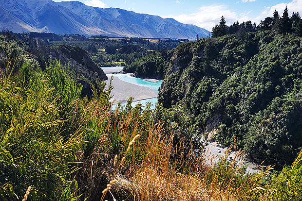 Nachmittags um halb vier fahren wir dann über die Brücke der Rakaia Gorge. Hier ist es aber schön! Und einen Campingplatz gibt es auch. Also: Stopp für heute!