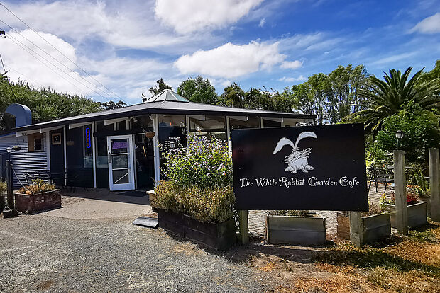 Inzwischen ist Kaffee-Zeit. Mitten im Nirgendwo an der Landstraße hat ein junges Pärchen das „White Rabbit Café“. Wir sitzen dort im Garten und genießen Brownie, Apfel- und Käsestrudel.