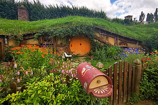 Wir spazieren an den Hobbithöhlen vorbei und sind begeistert. Das ganze ist sooo liebevoll gemacht !!!