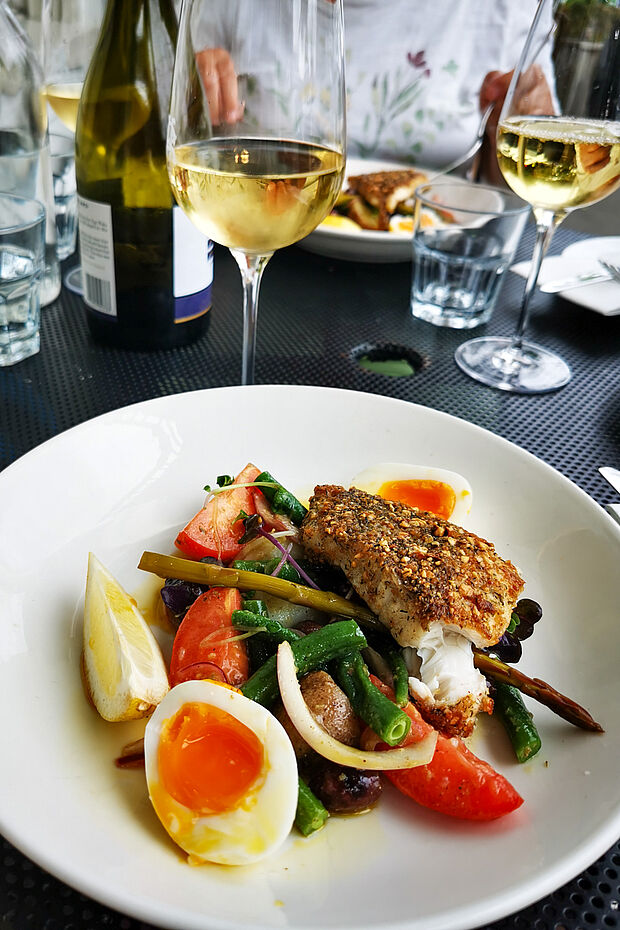 Wir haben uns allerdings eher an die Weiß- und Rose-Weine gehalten, obwohl die Gegend vor allem für seinen Pinot Noir bekannt ist.