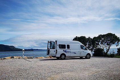 Nur 2 Kilometer weiter ist das Camp Whariki Beach, in dem wir für heute reserviert haben.