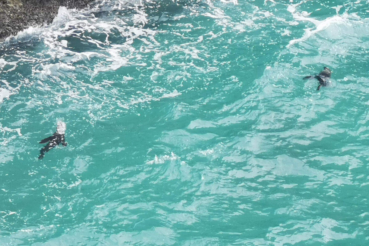 Ich drehe erstmal eine Fotorunde über den ganzen Strand. Fotomotive gibt es mehr als genug. Felsen, Sand, Höhlen und Seehunde. Ute und Matthias legen sich in den Sand.