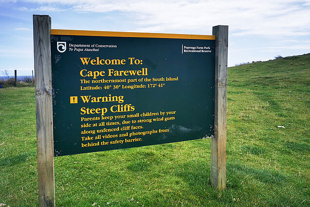 Dann sind wir am Cape Farewell. Der Name stammt noch von James Cook, als er 1770 die Insel verließ. Hier fängt auch das Farewell Split an, auf dem es viele Vogelarten gibt, das man aber nicht ohne Führung betreten darf.