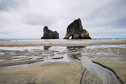 Wir haben heute nicht viele Kilometer vor uns - nur etwas mehr als 30, Deshalb lassen wir es morgens wieder gemütlich angehen. Unsere Ziele sind heute Cap Farewell und der Whairiki Beach. Zu zweiterem sollten wir zur Low Tide - und die ist erst um 17:30 Uhr.