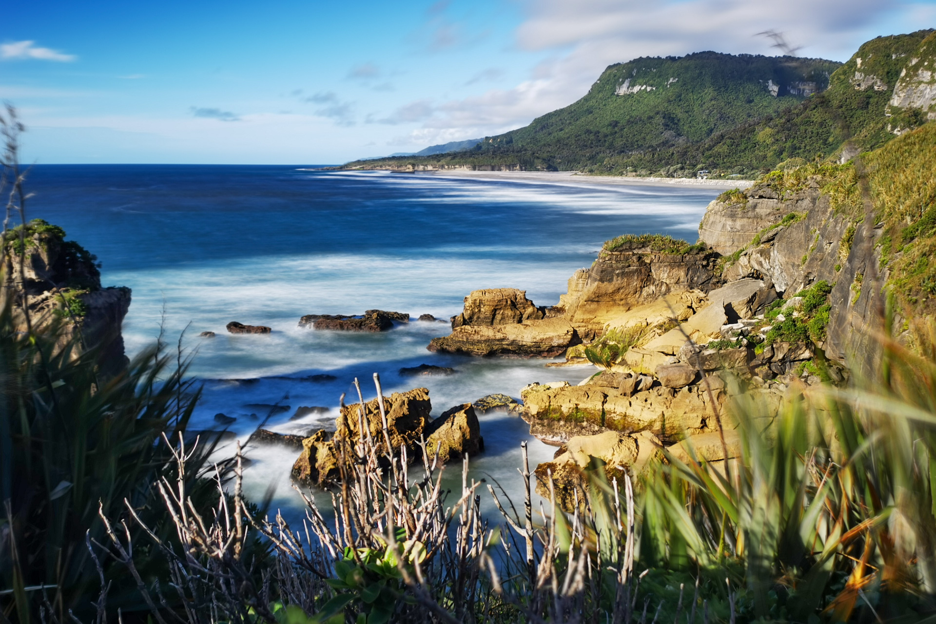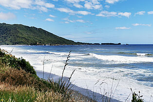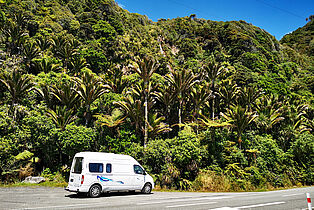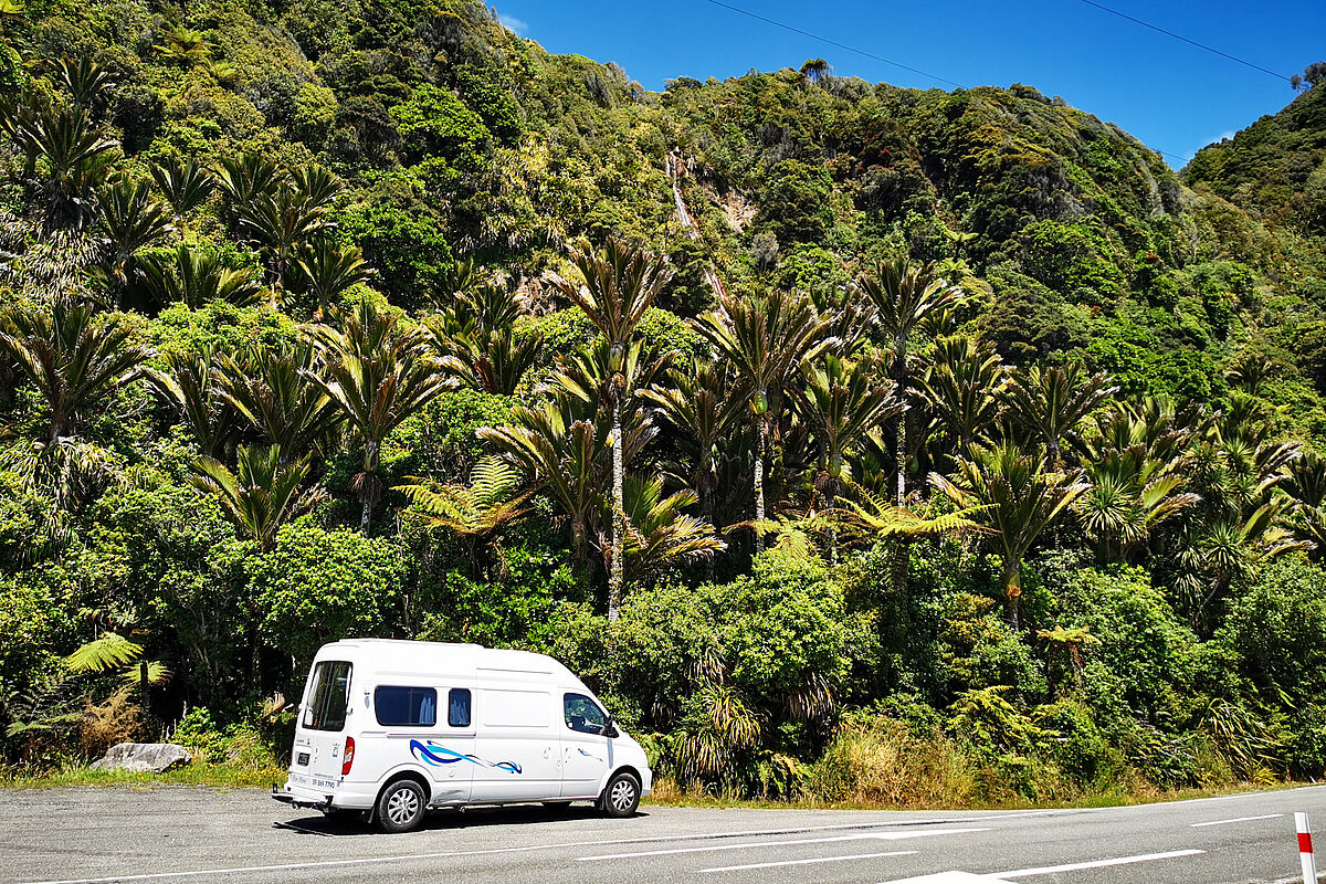 So halten wir immer wieder an Viewpoints an und sind erst um vier am Punakaiki Beach Camp.