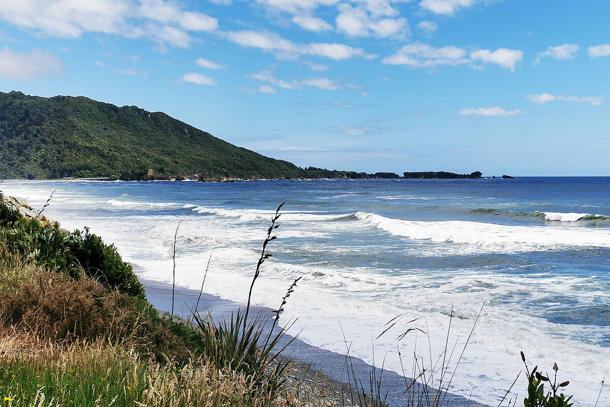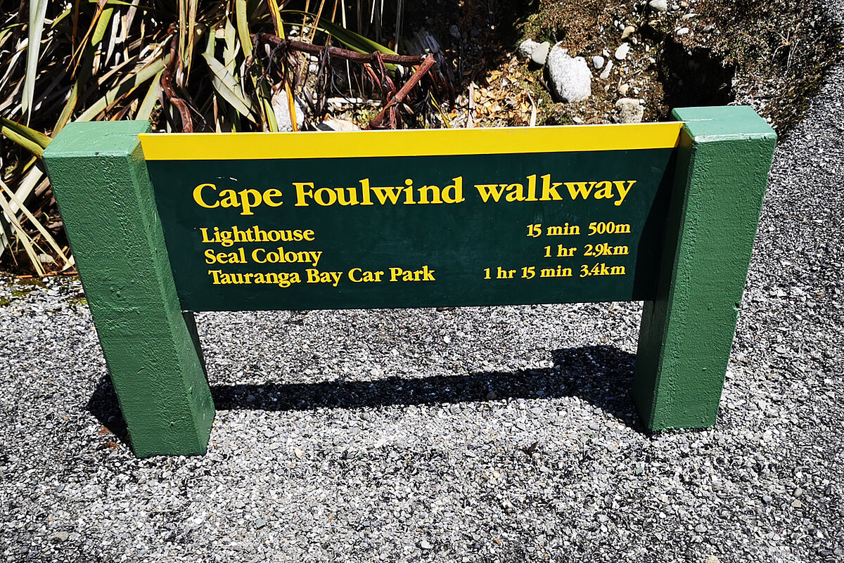 Mittags sind wir dann am Cape Foulwind in der Nähe von Westport. Wir fahren auf den Besucherparkplatz und gehen einen kleinen Walk bis in die Nähe des Leuchtturms.