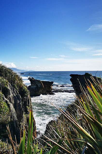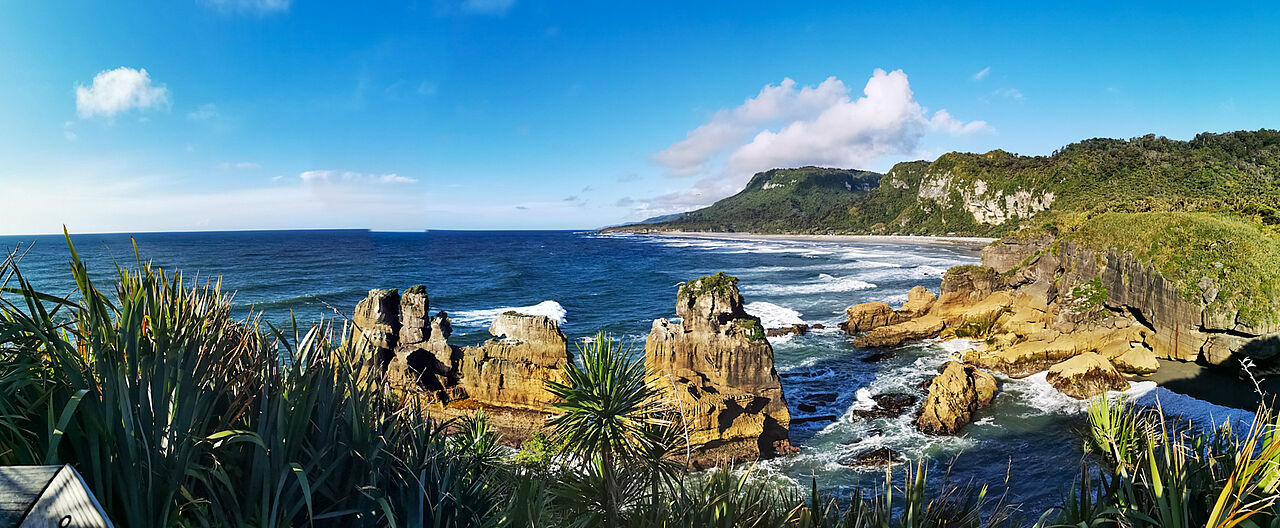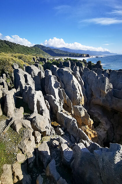 Ich spaziere die halbe Stunde zu den Pancake Rocks.