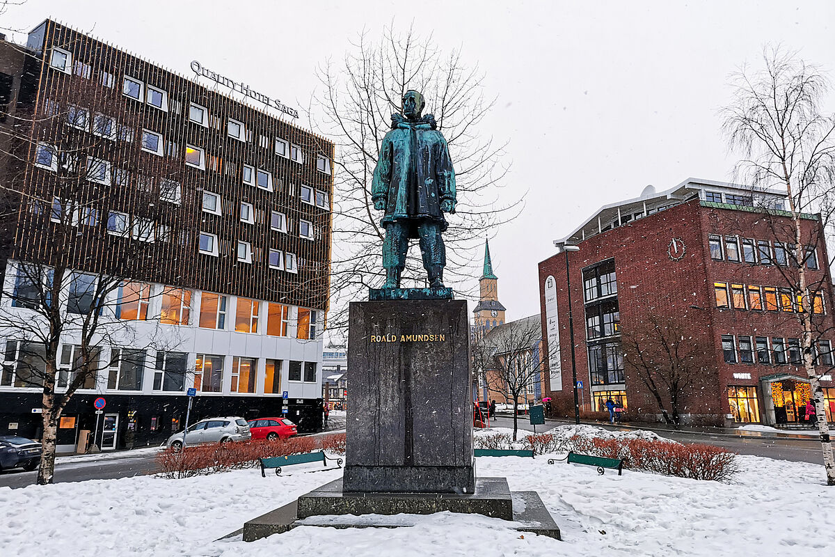 Wer einem noch auf Schritt und Tritt in der Stadt begegnet ist Roald Amundsen.
