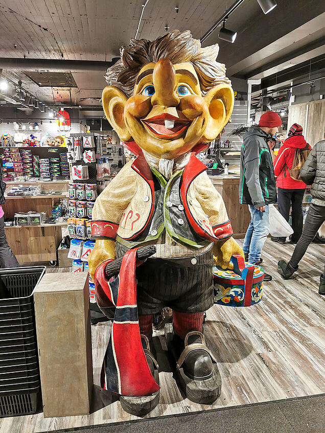 Eine gute Aussicht auf die Stadt hat man von einem kleinen Felsvorsprung mit Geländer rechts neben der Bergstation. Den erreicht man nach einem kurzen Spaziergang. Dort positionieren sich eigentlich schon sehr früh die Fotografen. Heute ist dort kein Mensch. Ich schnalle mir die Spikes an und will mich trotzdem auf den Weg machen. Ich traue mich das aber nur, weil der Wind bergauf bläst. Andersrum hätte ich Angst gehabt, runter geweht zu werden. ;-)