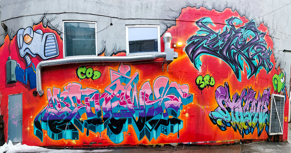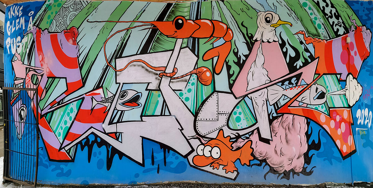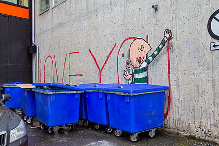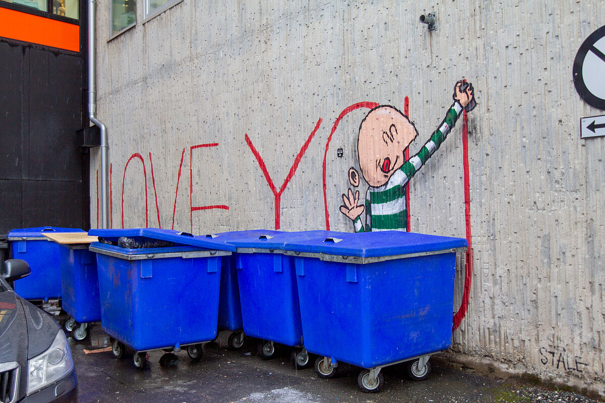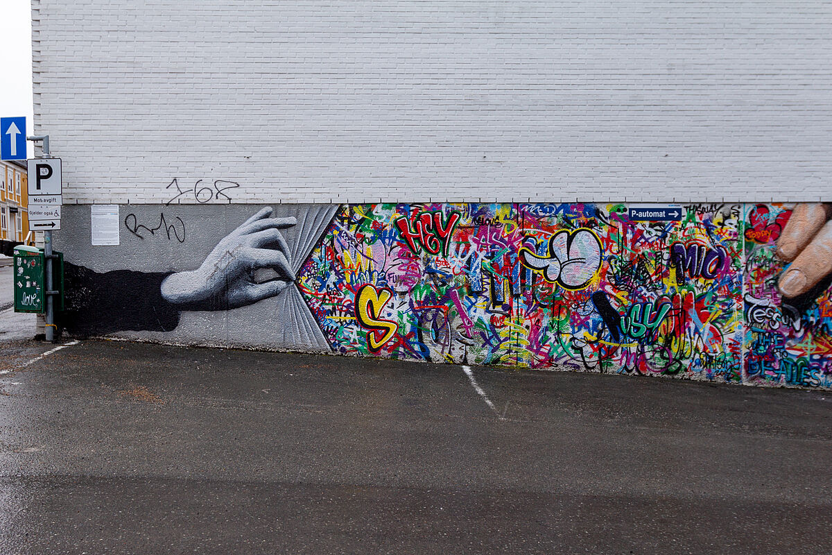 Nicht weit davon in einem Hinterhof der Storgata kann man das Graffiti finden.
