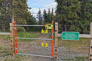 Der Campground liegt direkt am Ufer des Kluane-Sees. Da hier öfter Bären durch den Campingplatz spazieren, sind hier die Touristen mit den Zelten "eingezäunt" - verkehrte Welt.