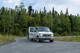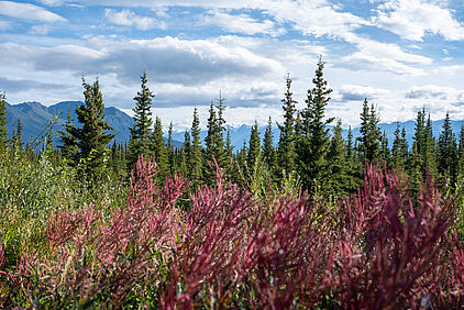 Wieder ist die Straße von Baustellen unterbrochen und mit Schlaglöchern übersäht. Deshalb zieht sich der Weg. Einerseits. Andererseits fahren wir duch wunderschöne Landschaften, die wir wirklich bestaunen. Nach 2,5 Stunden machen wir im Tetlin National Wildlife Refuge eine Pause. Wir laufen einen Trail, da wir etwas Bewegung brauchen.